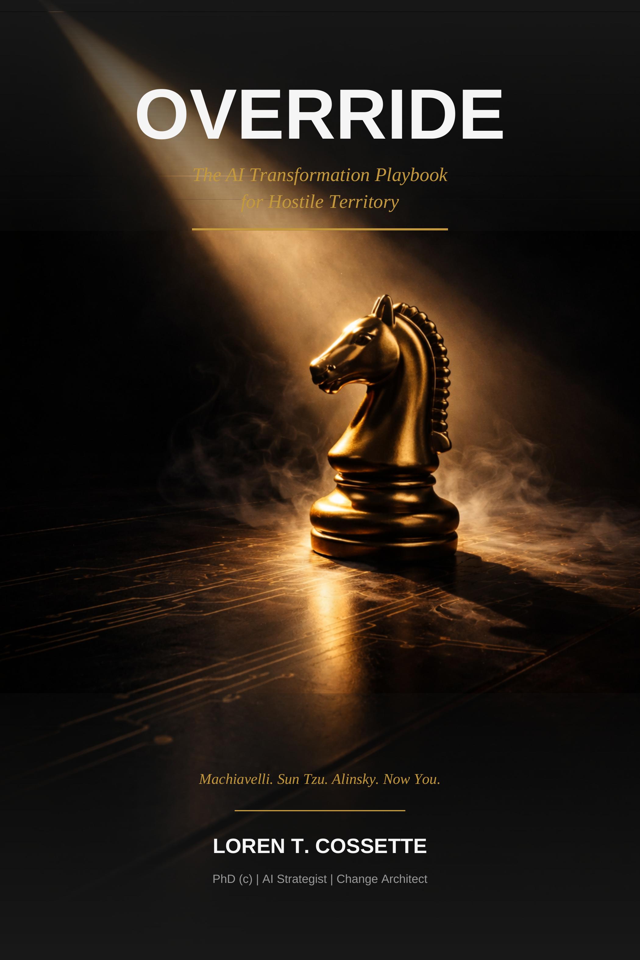Loren T. Cossette is the author of OVERRIDE: The AI Transformation Playbook for Hostile Territory — the first AI transformation methodology built for organizations that actively resist change. He is available for keynotes, podcast interviews, workshops, and panel discussions.